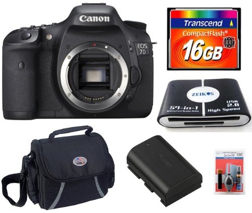 On Sale Canon EOS 7D SLR Digital Camera + Transcend 16 GB 133x CF Card, + Card Reader, + Case, + Extra LP-E6 Battery, + Digital Camera Cleaning Kit