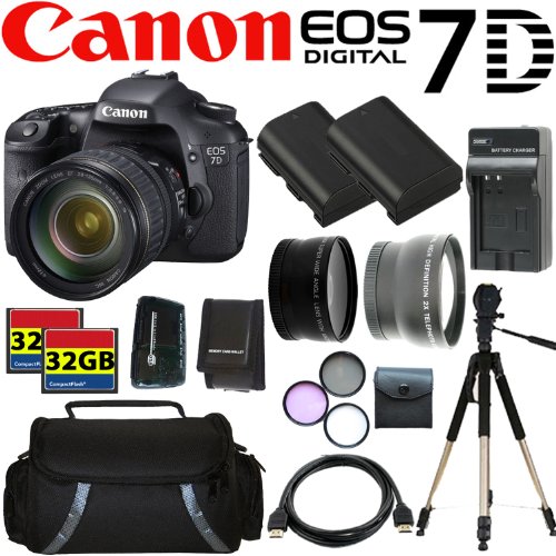 Canon EOS 7D 18 MP CMOS Digital SLR Camera with 3-inch LCD and 28-135mm f/3.5-5.6 IS USM Standard Zoom Lens + 64GB Advanced Accessory Kit