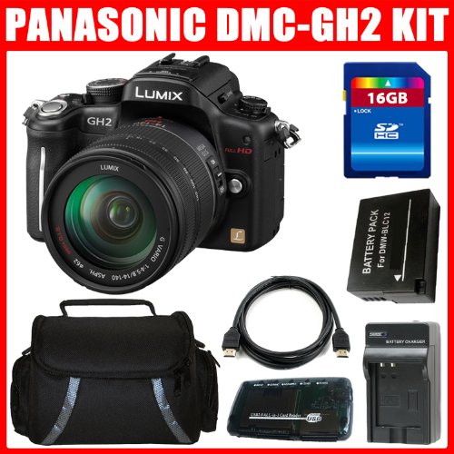 Panasonic Lumix DMC-GH2 16.05 MP Live MOS Interchangeable Lens Camera with 3-inch Free-Angle Touch Screen LCD and 14-140mm HD Hybrid Lens (Black) + 16GB SDHC Memory + Replacement Battery + Charger + Case + HDMI Cable And More