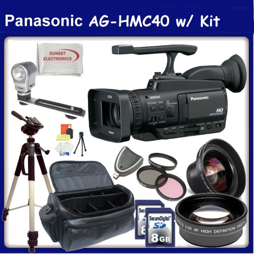 Panasonic Professional AG-HMC40 /HMC45 AVCHD Camcorder with 10.6MP Still and 12x Optical Zoom w/ SSE Premium Movie Makers Kit. Includes: Video Light, Full Size Fluid Head Tripod, 0.45x High Definition Wide Angle Lens, 2X Telephoto HD Lens, 3 Piece Pro Filter Kit, 2x 8GB SDHC Memory Cards, Card Reader, Starters Kit & Professional Carrying Case