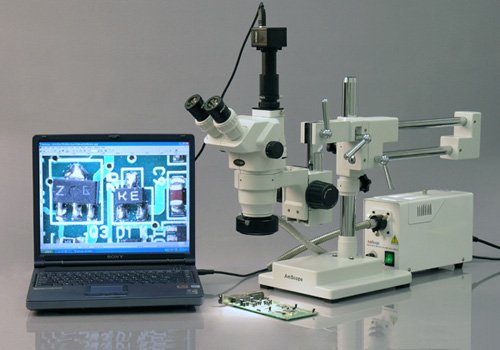 This is a trinocular 2X-225X extreme widefield zoom stereo microscope with 3MP digital image system, providing super crystal clear sharp images. It comes with a trinocular zoom microscope with two pairs of 30mm extreme widefield high-eyepoint eyepieces, a versatile 3D double-arm boom stand, and a 150W fiber optic halogen ring illuminator.The color digital image system captures 3.0 MP (2048x1536) high resolution microscope images and displays them as full-screen live video on your computer screen. Its built-in reduction lens gives your computer screen the same field of view images as those seen through the microscope eyepieces. With the included user-friendly software, which is compatible with Windows 2000/XP/Vista/7, you can edit microscope images in the same way as you use PhotoShop. You can conduct measurements across images, record videos, share images, and save them in BMP, TIFF, JPG, PICT, PTL and other formats. You can measure lengths, angles, areas and etc.The 3D boom stand allows you to rotate the microscope head around three different axes; that is, you can point the microscope head in any direction you wish. This microscope offers super high resolution, extreme widefield of view, super wide magnifying zoom range (112:1), and extremely large working distance (14"). It is an ideal instrument for engravers, gemologists, collectors and anyone in semiconductor and/or electronic industry. This microscope is made by the same technicians and on the same production line that makes optical instruments for Leica, Zeiss, Nikon and Olympus. It comes brand new in its factory sealed boxes.